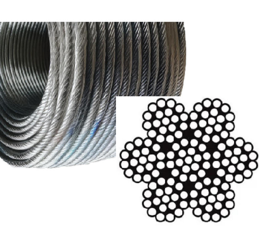 The 7x19 rope construction has good flexibility thanks to having more individual wires than constructions like 7x7. This rope flexes around pulleys and sheaves, making it ideal for tasks where the rope will need to bend. Examples include; winch rope, rope slings and control cables, architectural cable systems, marine rigging, garage door cables, and more.